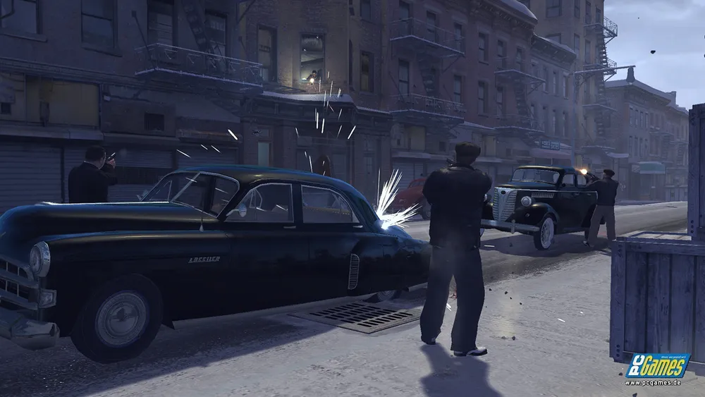 JS: Конечно, в один момент мы спросили себя «Куда мы обычно ходим?» Мы ходим в бары, рестораны, ходим покупать одежду или за едой. Молодые, свободные ребята, типа Вито, занимаются как раз этим. В городе представлены разные рестораны, но все они открыты 24 часа в сутки. Есть бары, каждый из которых принадлежит определенной банде, подобно тому, как у ирландцев есть свои бары, у чёрных есть свои бары, так же и у каждой семьи есть свой бар. Есть и оружейные магазины, которые представляют собой один из способов получения оружия. Есть здесь и парень Гарри, который тоже продаёт оружие в своей лавке, но она не имеет легального статуса.