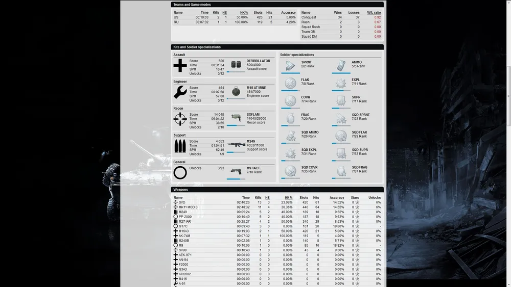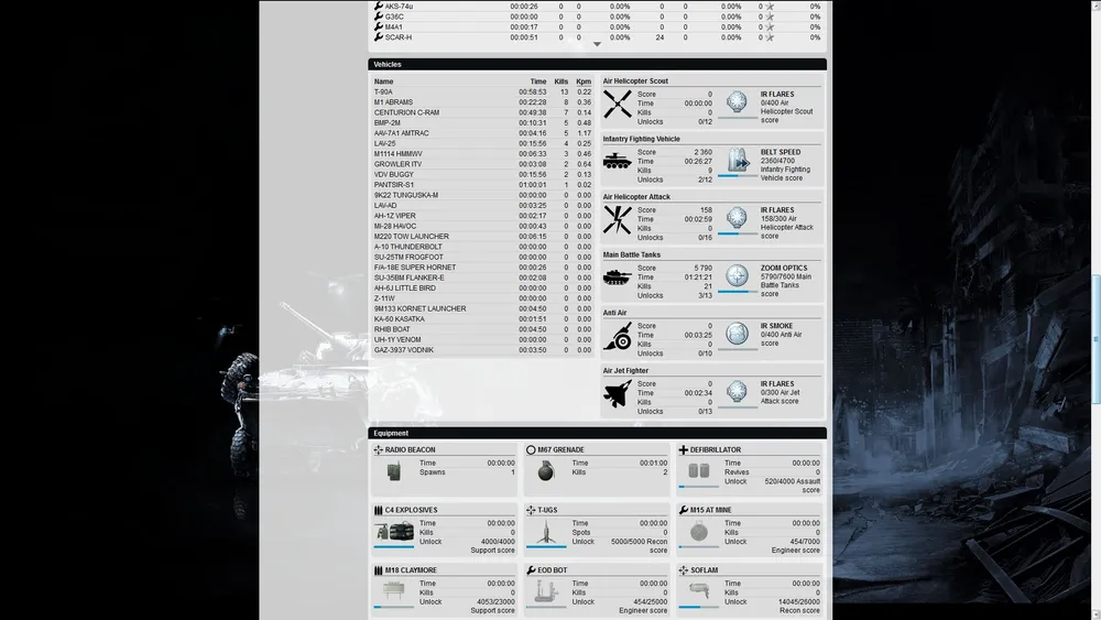 Да данном ресурсе вы сможете посмотреть подробную статистику вашего бойца, намного подробнее, чем в Battlelog. Так же на этом сайте можно выбрать себе подпись для форумов с вашей статистикой, вариантов подписей очень много.