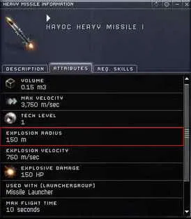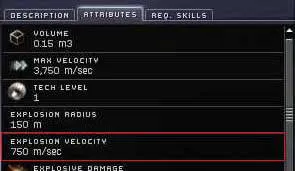 При детонации ракеты взрывная волна распространяется во всех направлениях от эпицентра взрыва, образуя, таким образом, шарообразную фигуру или сферу правильной формы, которая очерчивает зону поражения ракеты. Радиус окружности данной сферы и есть нужный нам радиус взрыва (explosion radius), он измеряется в метрах. У каждой ракеты различная зона поражения. При детонации радиус взрыва ракеты сравнивается с сигнатурой корабля (signature radius), которая тоже измеряется в метрах.