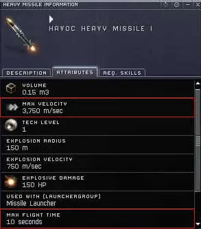 Максимальную скорость ракеты можно увеличить, изучив скилл Missile projection. К тому же, некоторые корабли, например, кальдарские Каракал (Caracal) или Рэйвен (Raven), имеют бонусы на увеличение скорости выпущенных ракет. Можно увеличить и максимальное время полета ракеты: за этот параметр отвечает скилл Missile bombardment. Ну и конечно, здесь бонусы тоже играют свою роль, например у Цербера (Cerberus).