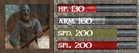 Викинг со средней защитой, метательными топорами и щитом для защиты от любых атак противника. Хускарл не такой сумасшедший как Берсеркер, но, возможно, это и к лучшему. Что за псих идет в бой без рубахи?!