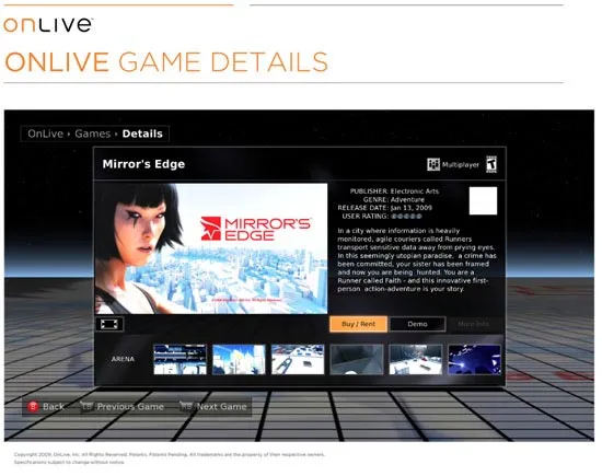 Правда, в отношении самих игр столь же "тепличных" финансовых условий ожидать не стоит. По словам создателей OnLive, цены на проекты в их службе будут "сопоставимы" и "конкурентоспособны" с розничными ценами. Поскольку речь идет в первую очередь об американском рынке, то логично предположить, что игра будет в среднем обходиться покупателю в $40-$50. При этом, Rearden LLC обещает обеспечивать пользователей самыми свежими новинками индустрии - компания сотрудничает лишь с теми издателями, которые готовы поставлять свои проекты в OnLive одновременно с их появлением в розничных сетях. На серверах службы уже лежит The Chronicles of Riddick: Assault on Dark Athena, Burnout Paradise, Mirror's Edge, Bioshock, Crysis Warhead, Lego Batman, Wheelman, GRID, Prince of Persia и другие хиты, а среди ее партнеров числятся такие маститые компании, как Electronic Arts, Ubisoft, Take-Two Interactive, Codemasters и Epic Games.