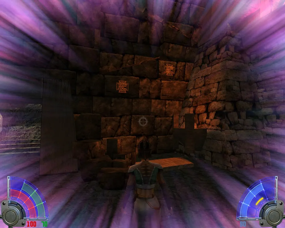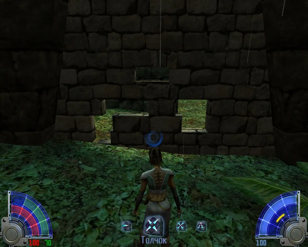 Сразу же за мостом видим полуразрушенную стену. Становится ясно, что ее надо разрушить окончательно, и использовать для этого следует способность силы "Толчок".
