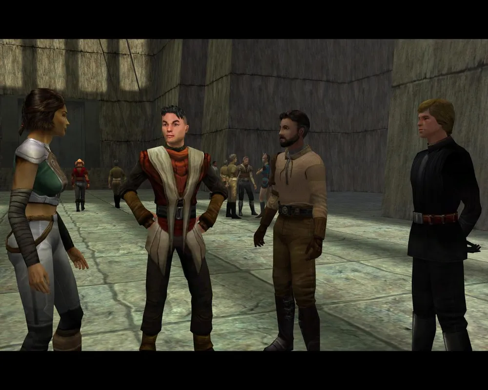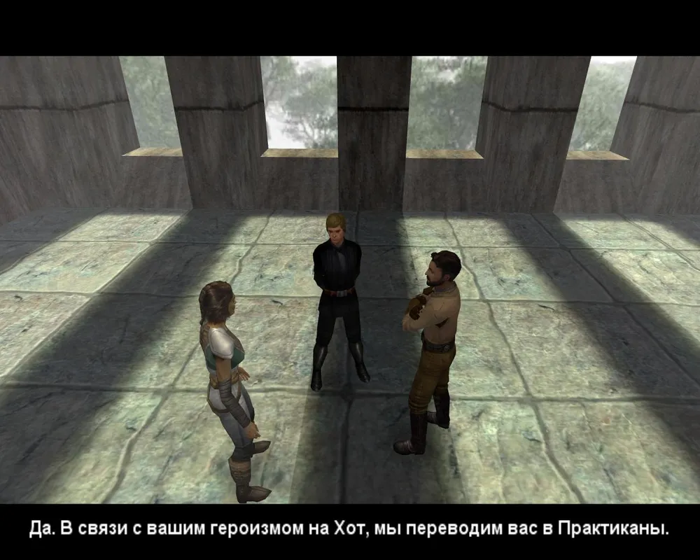 Наше присутствие не остается незамеченным, и мы получаем по голове. Очнувшись, обнаруживаем вокруг себя множество людей, среди которых Кайл Катарн и всем известный Люк Скайуокер. Коротенькое приветствие, пара вопросов о том, что мы видели, и на этом все. Пролог закончен. Следующая остановка - обучение, ведь именно ради него мы прибыли в академию Джедаев.