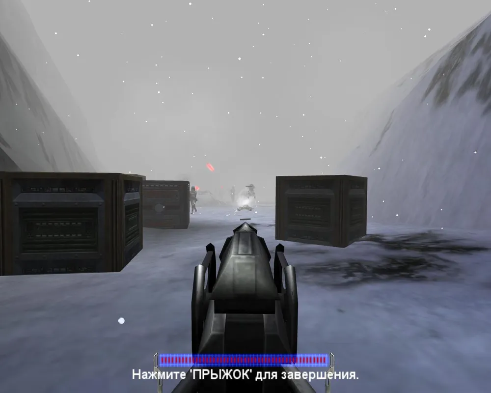 Затем продолжаем путь по маячкам, правда недолго - нам представится возможность пострелять из турели. Становимся за нее и расстреливаем около десятка штурмовиков, выбегающих из-за снега.