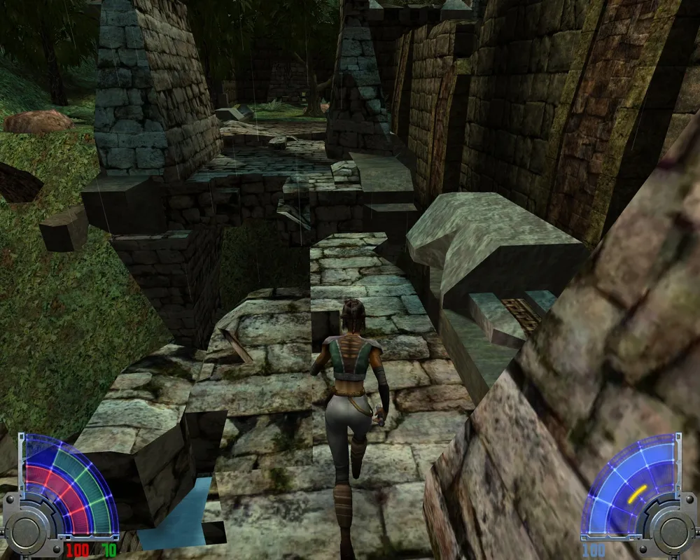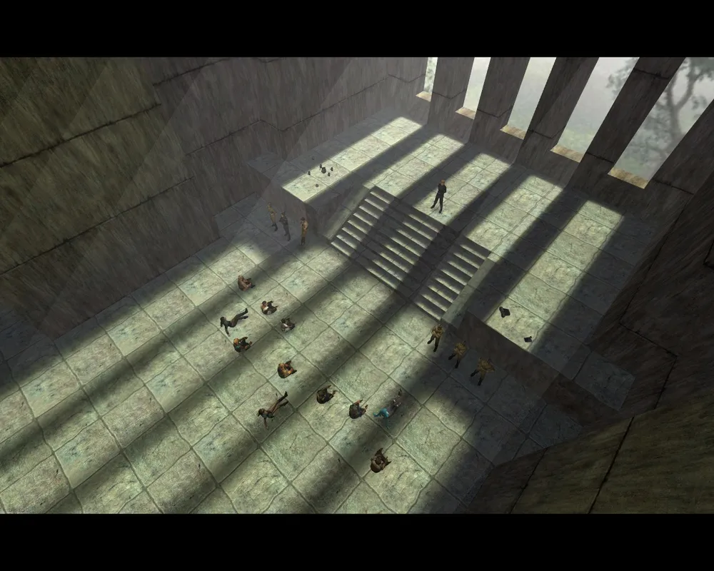 Покончив с ним, переходим вброд реку, правда почему-то уже без Роша, и наблюдаем, как группа неизвестных совершает странные действия с храмом.