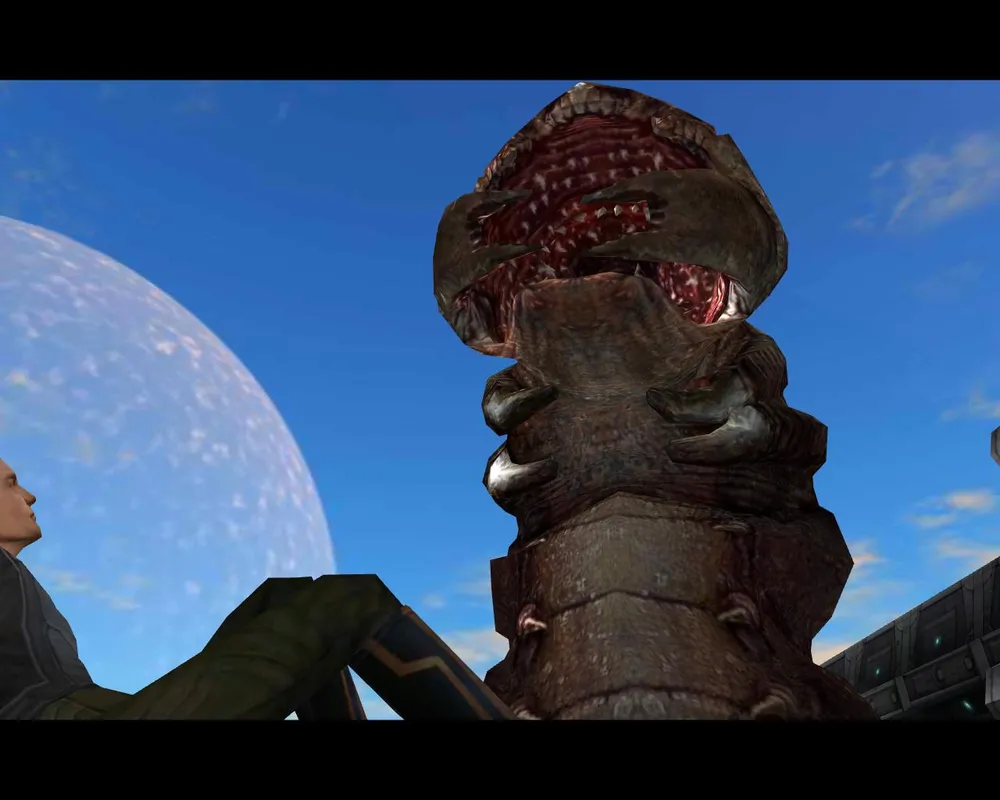 Выйдя из корабля, наблюдаем, как единственного выжившего съедает гигантский червь. Кажется, миссия будет не такой легкой, как предполагал Люк.