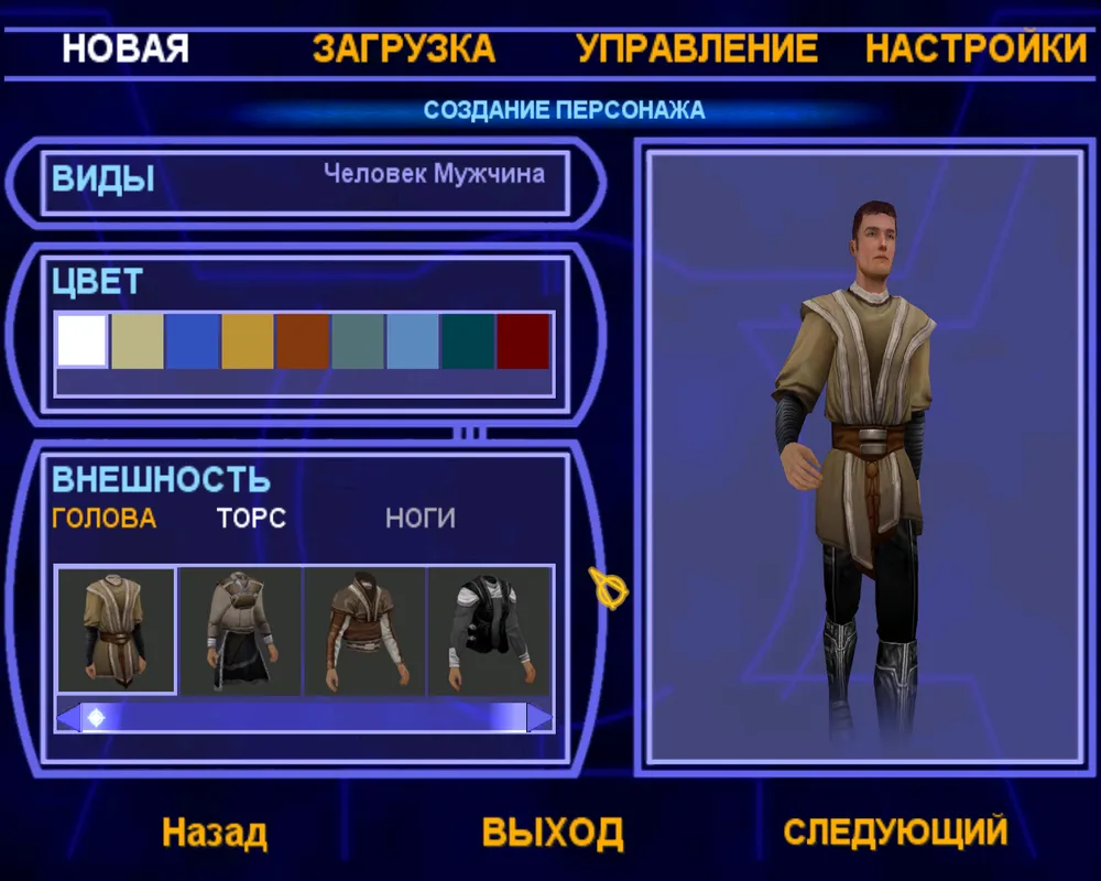 Следующее, что мы должны сделать - выбрать расу нашего персонажа и его внешний вид. Выбрать мы можем из 5 рас: Люди (мужчина и женщина), Кел-Доры и Родианцы (только мужчины), Твилеки и Забраки (только женщины). Я предпочитаю играть за женщину, человека или забрачку, в этот раз сыграю за человека.