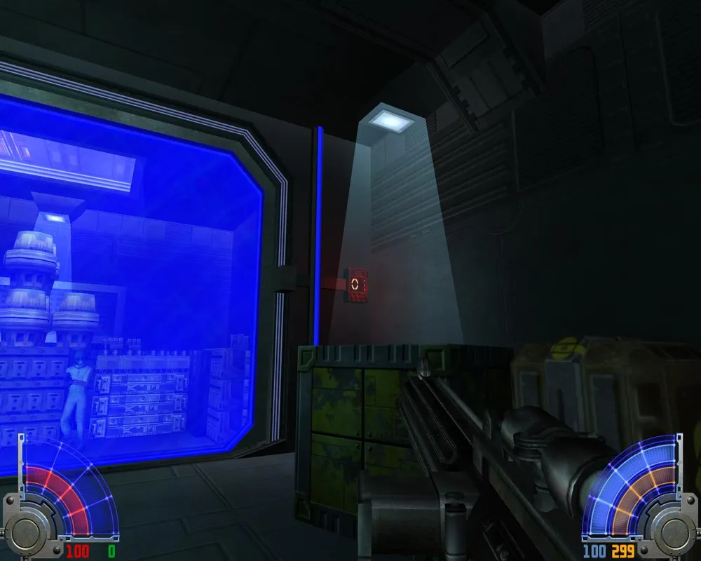 Возвращаемся в помещение с двумя лифтами и спускаемся на втором лифте вниз, теперь дверь там открыта. Какое-то время просто бежим и убиваем врагов. Выйдя на улицу, поворачиваем сначала налево и доходим до секретной зоны.
