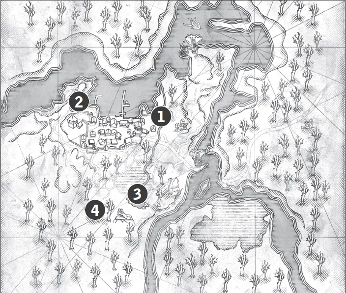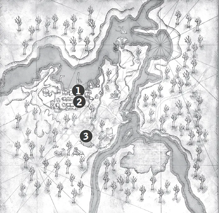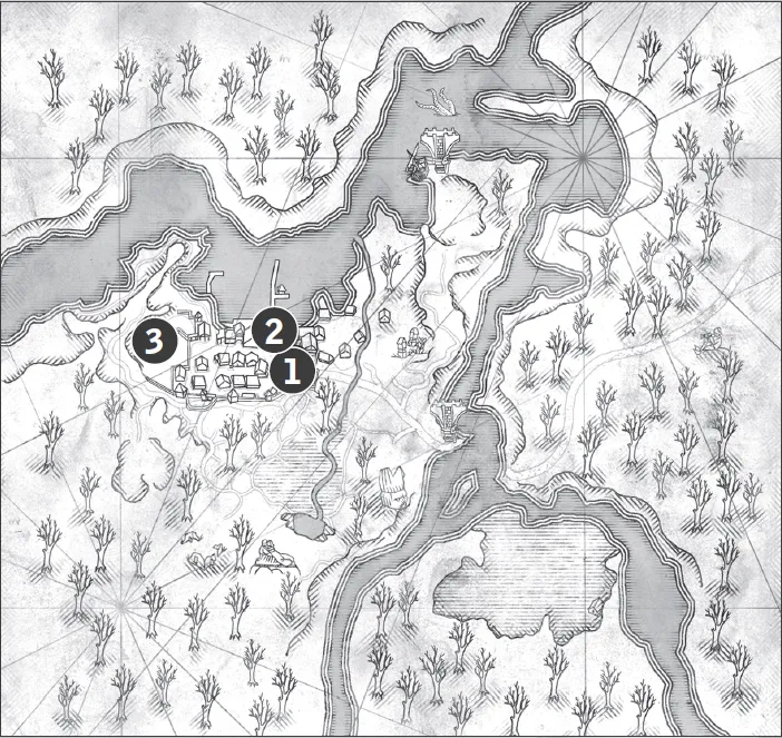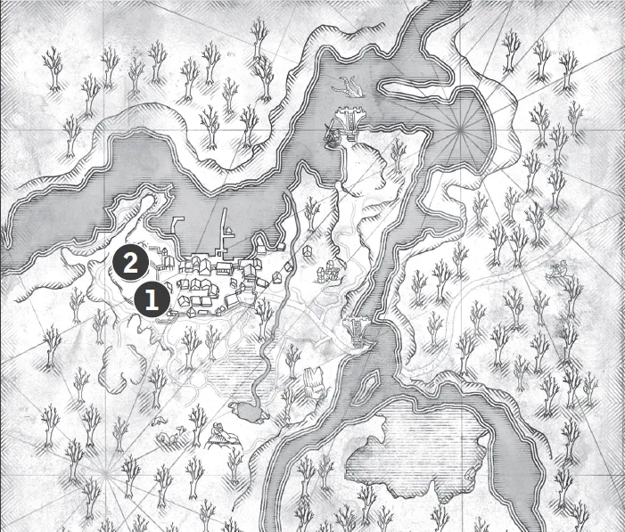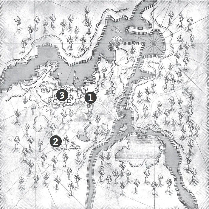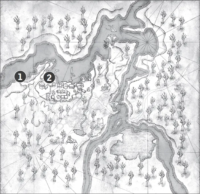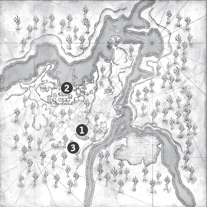 Мы отправляемся за крестьянином. По приходе выясняется, что чудовище уже исчезло, но на пристани нас ждут чародейка и несколько бедняков. Оказывается, что чародейка нас знает. Крестьяне настроены крайне враждебно: по их мнению, магичка едва не убила некого Зосика. В зависимости от того, что мы скажем [Выбор], эта стычка будет иметь различный исход. [A] Мы можем попытаться запугать крестьян. Если они не внемлют угрозам, начнется драка. Также [Б] мы можем спросить, что происходит; это позволит нам убедить крестьян, что во всем виновато чудовище и не стоит бранить чародейку.