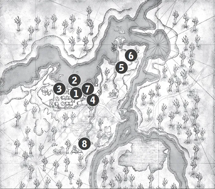 Найти игроков можно в трактире Флотзама: они все сидят за одним столом на нижнем этаже. Казимир и Бенедикт – самые слабые игроки, так что нам не нужны рекомендации, чтобы сыграть с ними. А вот чтобы сыграть против Зындраба, сидящего за тем же столом, мы сперва должны победить первых двух игроков. Потерпев поражение, Зындраб скажет, что мы достойны поучаствовать в настоящем состязании, и предупредит о нас двух более сильных игроков: Эйнара Гусселя и Прожженного. Первого мы можем найти в квартале