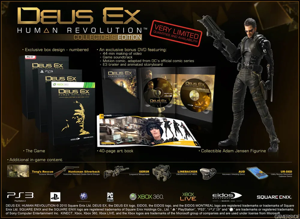 В этом посте мы хотели рассказать вам о видах изданий игры, но товарищ AQuaRity, в своём посте "[post]Подробности российского релиза Deus Ex Human Revolution от Нового Диска (пост дополнен)[/post]", опередил нас.