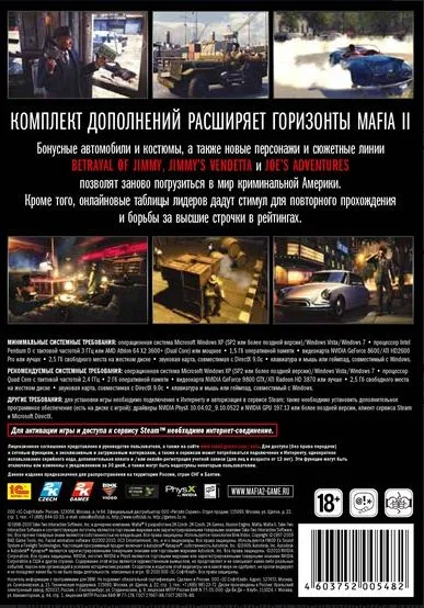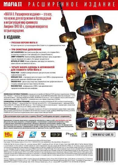 В первый вариант сборника войдет русская версия продолжения знаменитой гангстерской саги, три сюжетных дополнения — также полностью на русском языке, и четыре набора одежды и автомобилей для главного героя Mafia II. Кроме того, для обладателей российских лицензионных версий игры будет выпущен второй — специальный — вариант под названием «Mafia II. Дополнения», включающий только дополнения и наборы предметов.