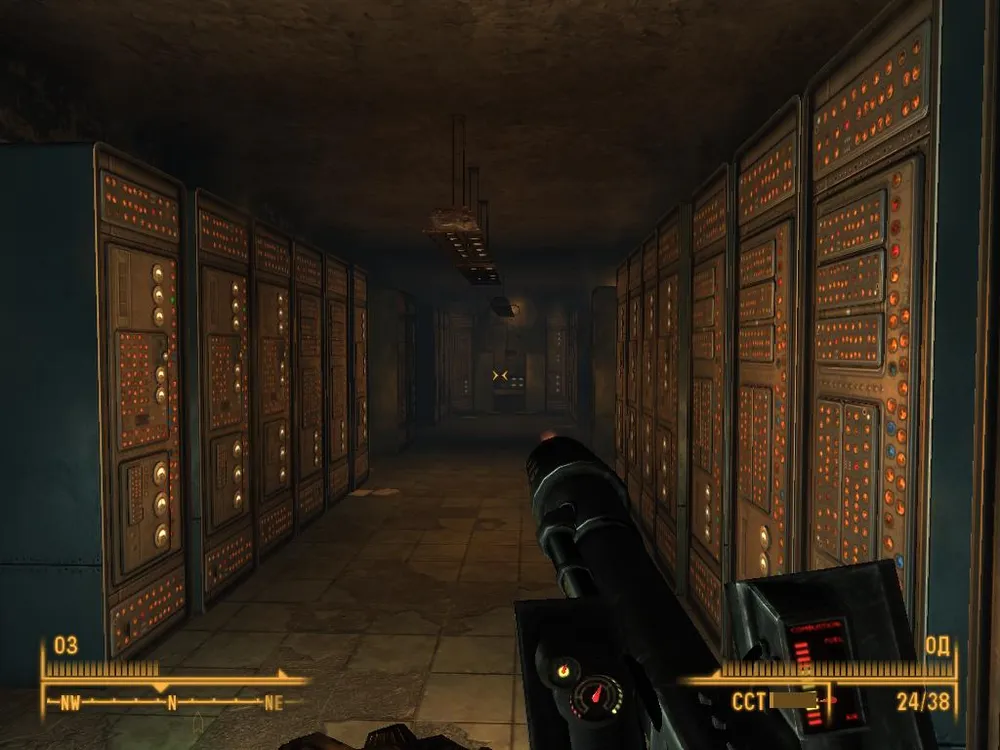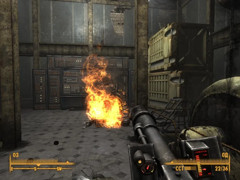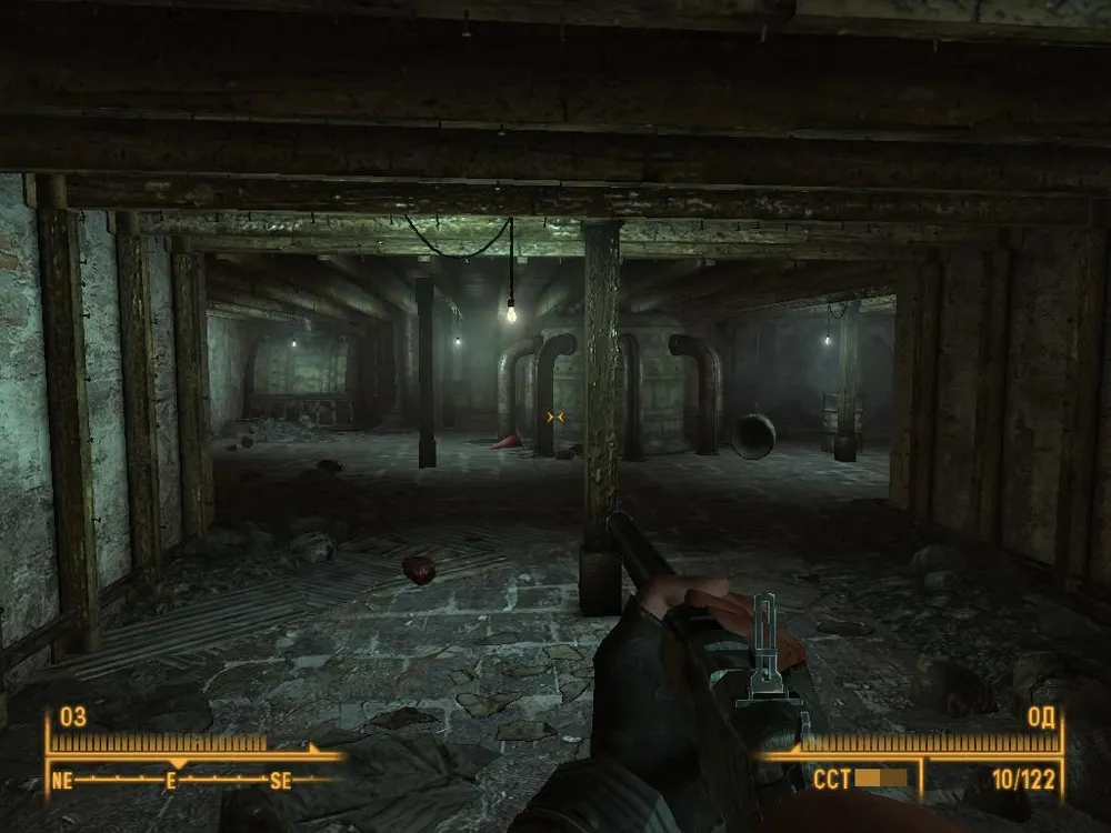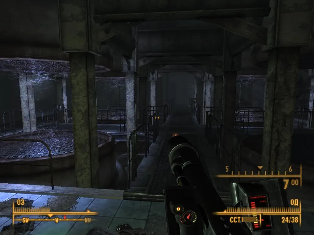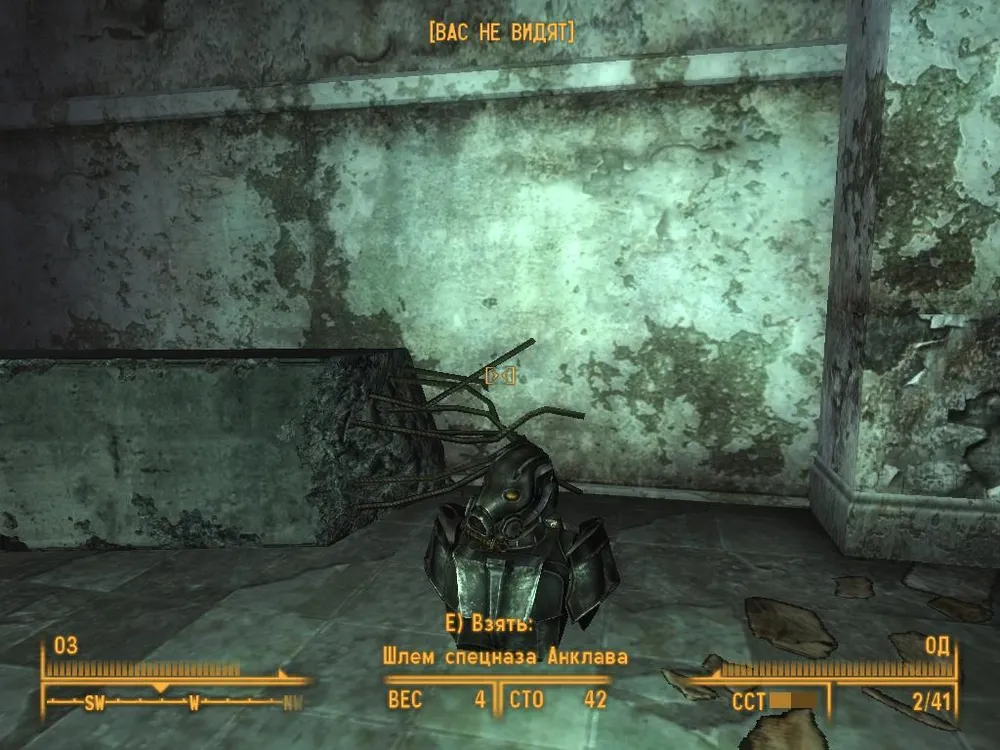 Похоже что здание пострадало от бомбардировок, может мне удастся найти здесь выхода наружу. Но пройдя немного вперёд, я услышал странный шум. А когда поянял что это то увидел на другом конце здания солдат Анклава. Что они здесь делают?
