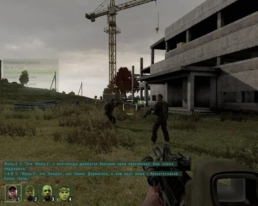 Черноруссия позволила реализовать разработчикам несколько типов миссий. Поскольку дело происходит все-таки в более-менее развитой стране постсоветского блока, то в игре есть сражения в промышленных городах, где нам приходится бегать между многоэтажками, залазить на высоченные заводские трубы и оттуда в бинокль искать противника и определять наше местоположение на карте. Бои в индустриальной зоне интересны тем, что сложно понять, где находится враг (ведь не видно ни рожна, и точно сказать, что за этим поворотом недруг – невозможно) и легко самому проложить путь сквозь наиболее «закрытые» местечки. Например, можно двигаться в узких проходах между складами, ползать под трубами и т. п.
