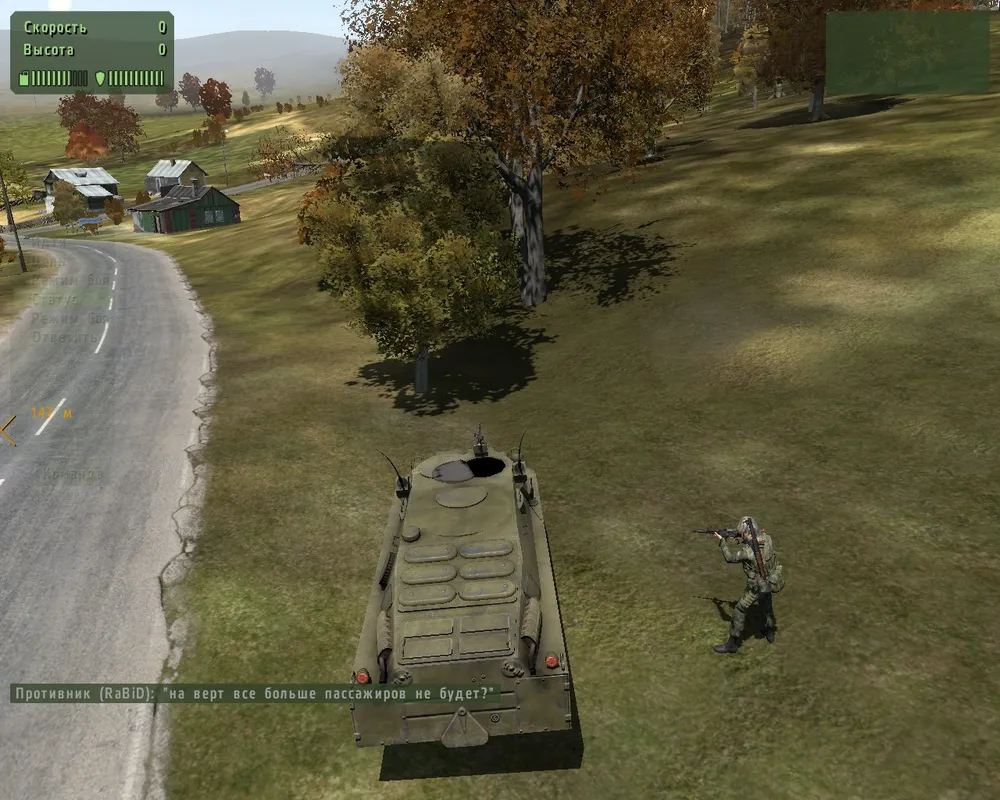 БТРом закрываю от снайпера товарища. Я медленно еду вперед, он бежит за мной. Потом друг засядет в лесу и будет караулить неприятеля