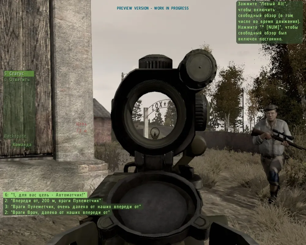 Но не только крепостью здоровья и продолжительностью жизни ограничивается здешняя реалистичность. Она во всем. Территории огромны и не масштабированы, работа с картой, как в настоящем сражении – никаких «мини-мап» и отметок, кто где стоит; бойцы бегают с той же скоростью, что и реальные военные. Они устают, поэтому после долгой пробежки точно стрелять не получится (реализовано это не так аркадно, как в Call of Duty 4: Modern Warfare). Более того, тут вообще очень сложно быть метким. На полет пули влияет огромное количество факторов: скорость ветра, расстояние до цели, износ оружия, усталость персонажа, его здоровье, ну и разброс при стрельбе, а он просто кошмарный (читай: настоящий).