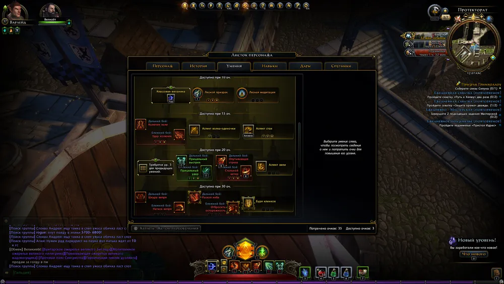 Выбор скиллов