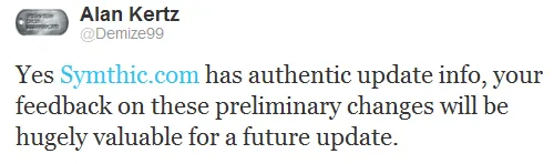 Два дня назад сайт Symthic.com выложил в сеть список изменений грядущего патча, касающиеся баланса оружия. Что самое удивительное, Алан Керц официально подтвердил подлинность данных.