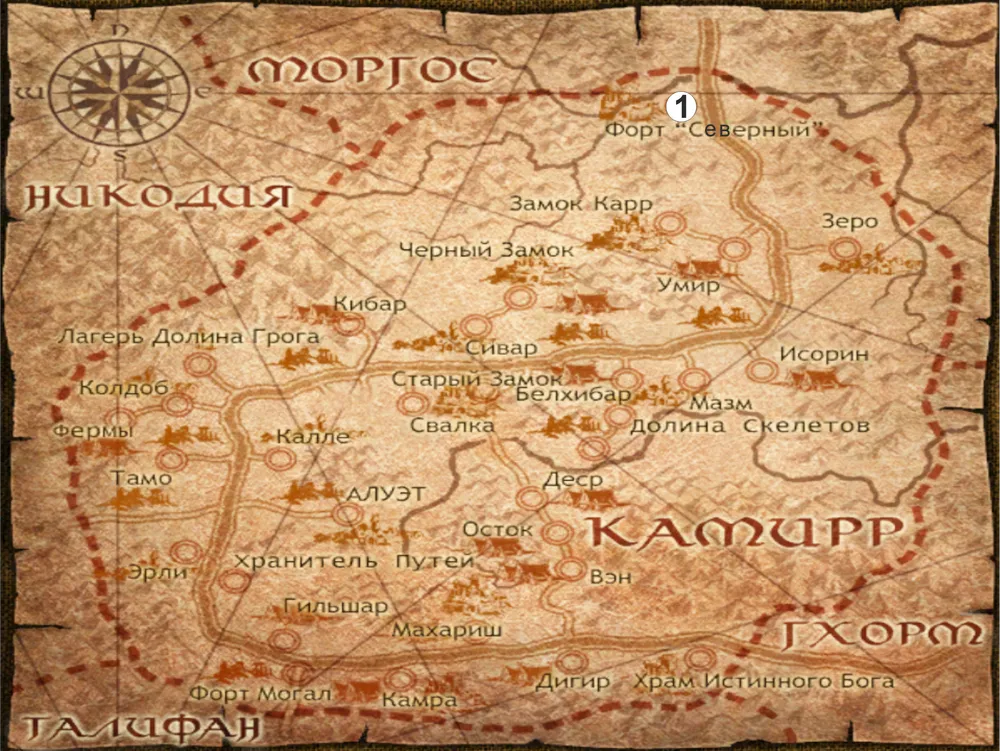 Одним из центров возрождения человеческой цивилизации после Распада был Камирр. В настоящее время это лишь маленькое герцогство под протекторатом Никодии и управляет им человек по имени Хизз Оркан. Титул его звучит просто – его светлость Хизз Оркан, герцог Камиррский. Некогда к титулу прилагался довесок в виде упоминания о вассальной зависимости Камирра от Никодии, но прадед и дед Хизза вели пятьдесят лет войну, результатом которой стало фактическое отделение герцогства от империи. Правда, налог (по крайней мере – большая его часть) по-прежнему платиться в имперскую казну и все высшие чиновники Камирра назначаются Эльзастом. Но герцог уже может иметь свою армию, а не просто гвардию в три десятка человек. Эта армия в основном сосредоточена на границе или занята отловом разбойников, коих развелось в последнее время великое множество. А император после Моргосской кампании постоянно держит в Камирре так называемый “ экспедиционный корпус “ численностью в двести мечей. Корпусом управляет генерал Долин Грог – фанатично преданный Эльзасту вояка. Сложилась интересная ситуация – формально Долин подчинен Хиззу, но фактически он над ним надсмотрщик.