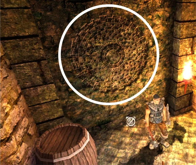 Выйдя из обеденного зала, пройдите до конца западный коридор и сверните на юг. Вы окажетесь в небольшом тупике, в западной стене которого находится неприметная дверь. Ключ барона поможет открыть ее. За дверью находится лестница, ведущая в подвал. Спустившись вниз, пройдите по коридору на восток до конца, где вам придется повернуть на север. Полукруглый коридор выведет вас в небольшой зал, в дальнем конце которого имеется лестница, ведущая вниз. Она приведет вас к коридору, в конце которого вы обнаружите запертый сундук. И снова ключ барона откроет его. В сундуке вы найдете Меч Восстания (+2 сила, ловкость, интеллект, харизма, колоть 10, рубить 45).