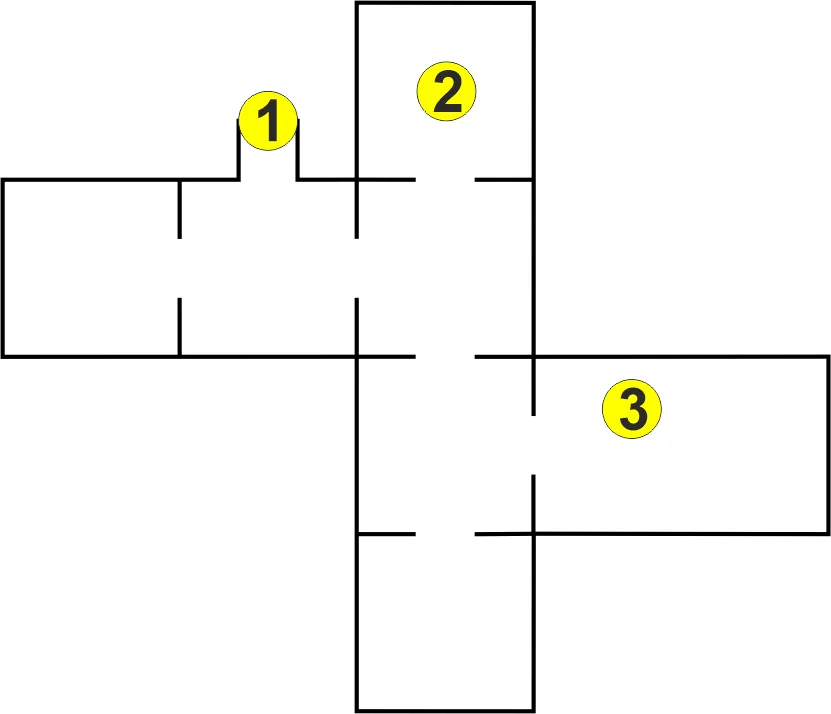 1 - выход на лестницу. 2 - барон Дентор. 3 - машина для создания клонов.