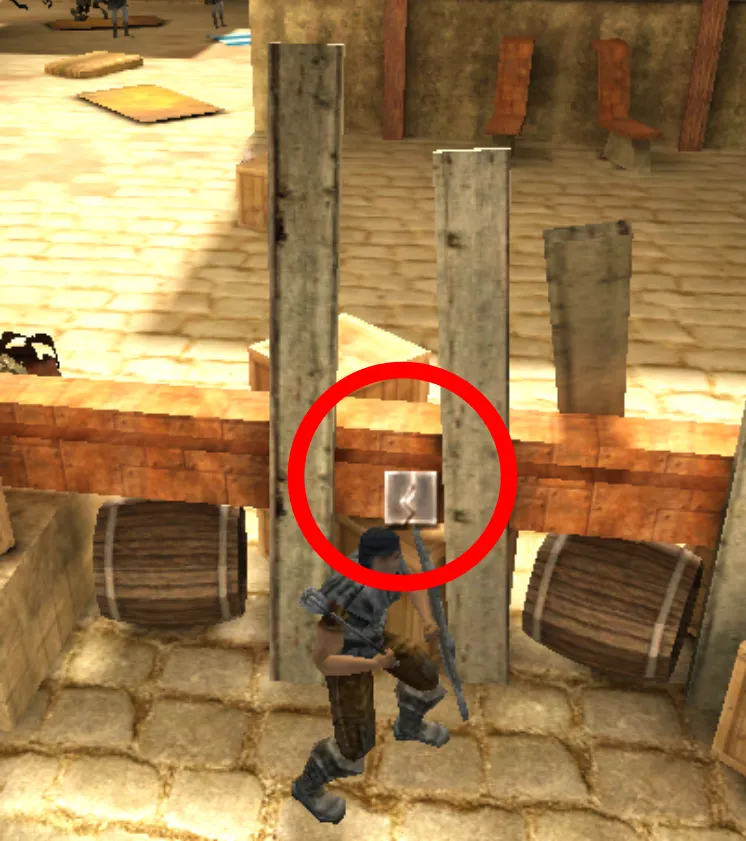 Зайдя в штаб рейнджеров (вход у канала) и поговорив с караульными, вы узнаете, что набор в рейнджеры временно прекращен, а в камере у них сидит какой-то псих, которому все время кажется, что его хотят убить. Опасаясь за свою жизнь, он даже заплатил 100 монет, чтобы его посадили в камеру.