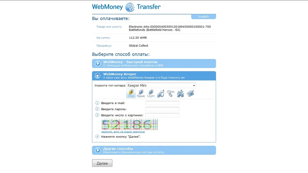 3.1.1 WebMoney вводим данные от кошелька и код с картинки: