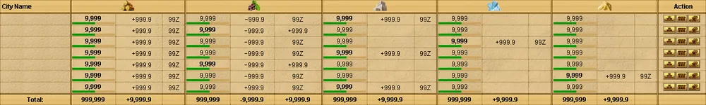 * Зеленые цифры указывают, сколько ресурсов останется после улучшения.