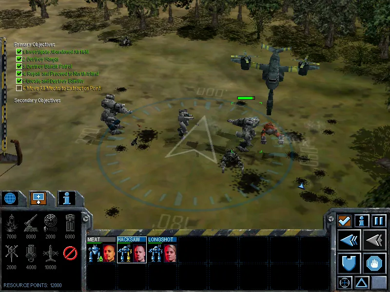 Ваша цель – уничтожение и захват объектов, а не врагов, так что старайтесь не тратить на них время – дял того вы и брали быстрые мехи. Можете либо выманивать на себя одним мехом врагов, а остальными в то время выполнять очередную цель, либо просто быстро атаковать и отступать.