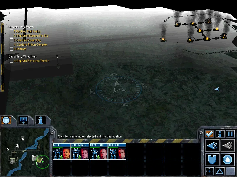 Подберите на накопившиеся ресурсы лучших мехов из тех, что вы подбили. Отправьте его в ремонтый цех, подлатать. После починки соберите всех у тюрьмы и захватите ее. С запада на вас нападут вражеские мехи, расправьтесь с ними. Можете отправляться в точку эвакуации. По окончании миссии к вам присоединяется мехвоин Steel.