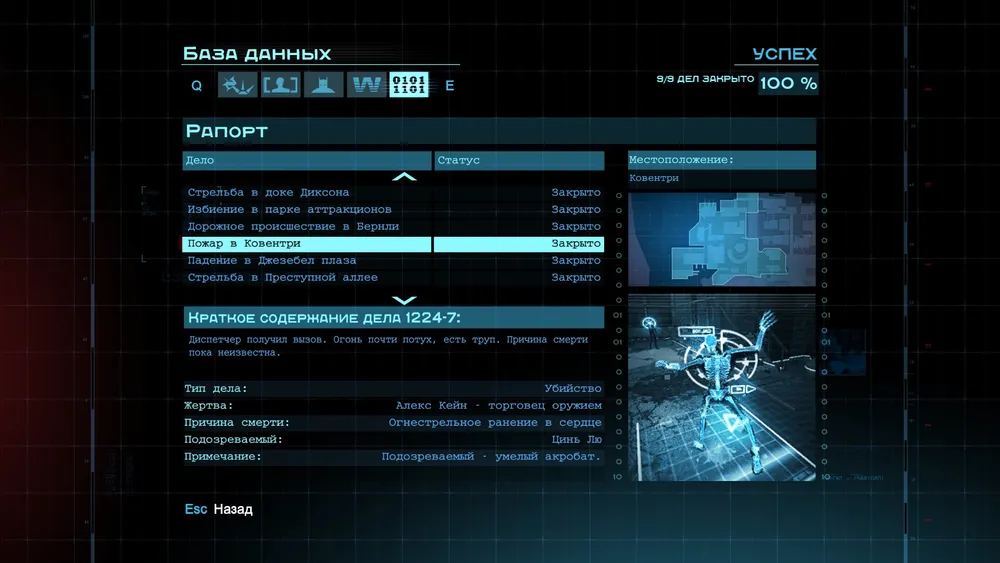 Наводку на это расследование мы получим после завершения сюжетной линии. Приходим на место преступления и сканируем накрытое тело. Убитым оказался спецназовец. Вся его группа сейчас под следствием. Нам предстоит узнать, что он здесь делал. Разобравшись с уликами, понимаем, что подозреваемый один из бывшего отряда убитого. Он ошивается на крыше вместе со своими дружками. Избиваем Демарко и его друзей, потом допрашиваем и закрываем дело.