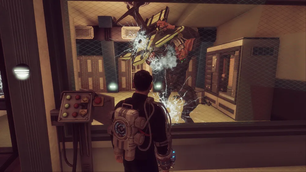 Теперь мы можем зайти в лабораторию и все увидеть своими глазами. Говорим с докторами, слушаем записи, читаем заметки, наблюдаем за работой полигона. После тщательного обследования лаборатории поднимитесь на второй этаж и поговорите с доктором Дрезнером. Он скажет, что несколько глотов сбежали, и неплохо было бы их поймать. Они оставляют четкий след, так что найти их будет несложно (использование тактического режима). На выходе из лаборатории, в комнате очистки на вас нападет первый глот Генриха. Убивайте его и идите дальше. Идите в комнату отдыха, в туалет, оттуда вылетит глот, но не станет нас атаковать, а запрыгнет в вентиляцию. Поднимайтесь на второй этаж и заходите в доступную дверь, там уничтожайте всех глотов и возвращайтесь к Генриху. В награду за выполненное поручение доктор даст нам автономное задание, связанное с нанотехнологиями.