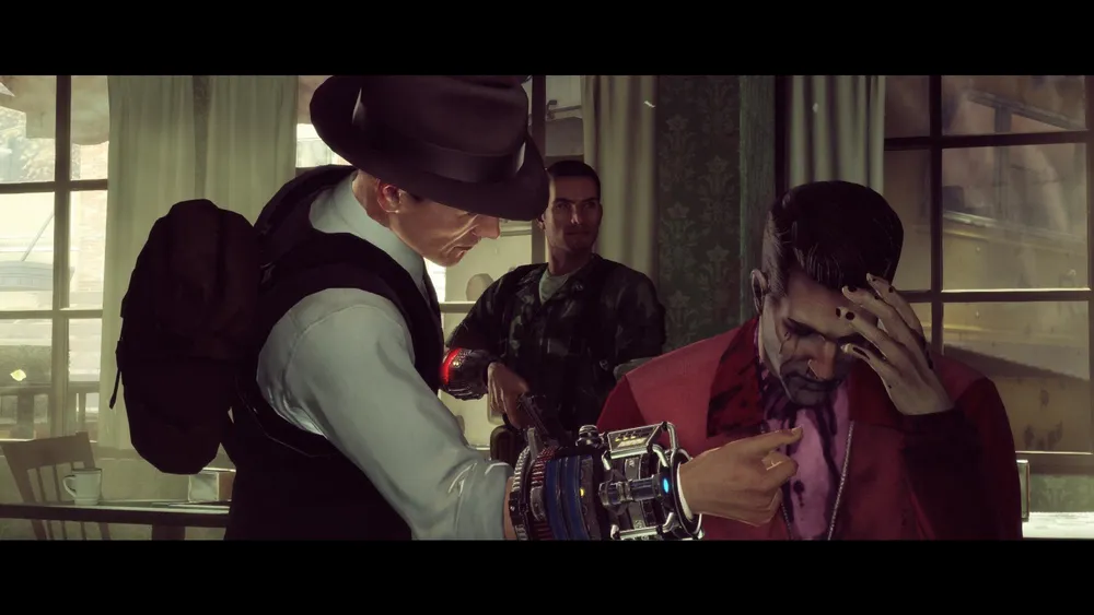Копаемся в настройках, выбираем сложность игры и начинаем играть. Нам покажут ролик, где собраны крутые и серьезные мужики, обсуждающие проблемы США. Один из них упоминает, что в одной из шахт Монтаны нашли странный предмет, никому не известный, и судя по всему не из нашего мира. Когда его спросят, где же этот предмет, то он упомянет агента Картера, а нас перенесет в мотель, к тому самому Картеру.