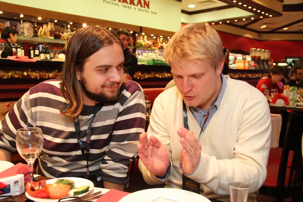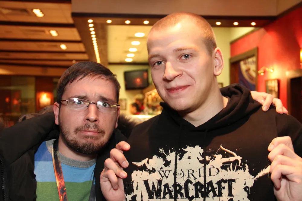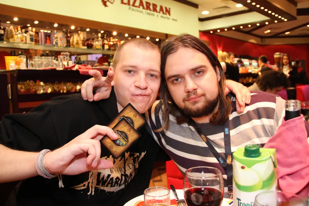 Vizzerdrix и NoFate красавы. Александр подарил мне диск World of Warcraft: Cataclysm, а Андрей для меня выпросил у одной красивой девушки, из очереди, 2 поцелуя в обе щеки за 2 dvd-box'а World of Warcraft: Cataclysm :)