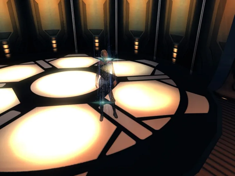 Как и в сериале, игроки могут телепортироваться с корабля на планету и обратно через специальный лифт The Bridge.