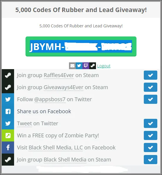 1. Переходим по ссылке => https://gleam.io/zBSqP/5000-codes-of-rubber-and-lead-giveaway или http://www.giveaways4ever.com/