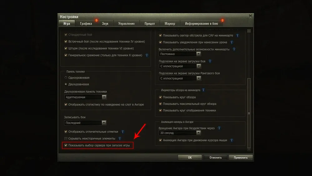 При входе в игру через Wargaming Game Center клиент подключает вас к серверу с оптимальной нагрузкой. Однако вы можете самостоятельно задать настройки и активировать опцию выбора сервера.