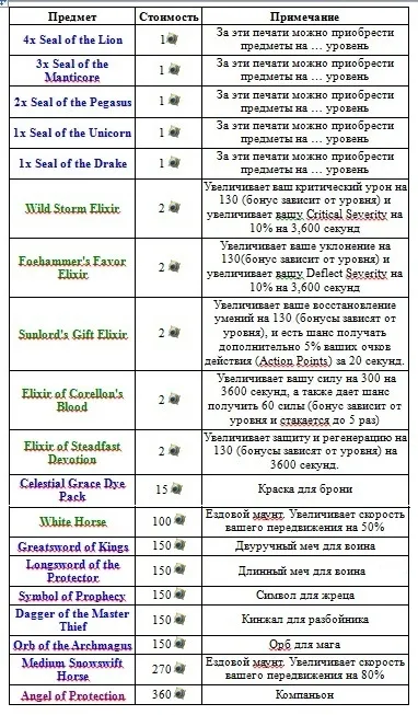 Что можно купить в магазине "Vault of Piety" за Celestial Coin.