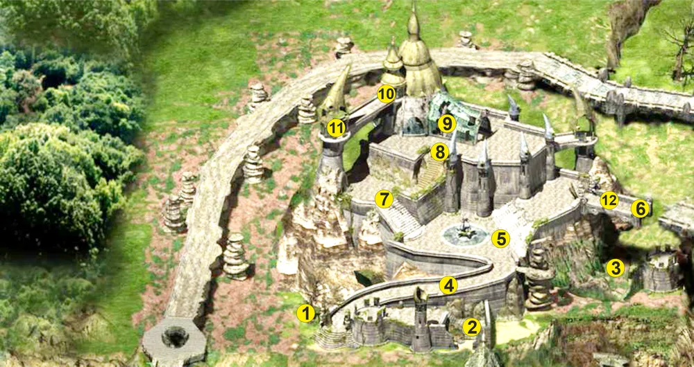 6. Мост. Мост охраняет стая горгулий. Расправившись с ними, коснитесь моста, чтобы опустить его. Мост соединяет замок Кормантор с рощей Седлающего ветер.
