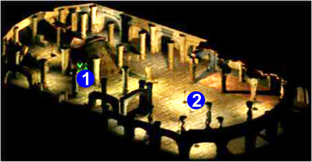 3. Сосуд душ. Его охраняют архимаг, драконид и восемь зомби. Если до сих пор вы помогали Натилик, то она появится здесь и поможет вам в схватке. Закончив бой, вам следует уничтожить сосуд душ. После этого Натилик покончит с собой, чтобы присоединиться к своему народу. На поле боя вы найдете ее оружие и экипировку: короткий меч +4, большой щит +2, кольчугу +4, длинный лук +4, два эликсира полного излечения и два бальзама полного исцеления. Вы также найдете кольцо ложной надежды Дидима (-2 АС, -3 телосложение, -2 инициатива, -2 попадание и повреждение, -1 все спасброски, +4 харизма, заклинание Лечение легких ран). Помимо этого, под разрушенным сосудом душ обнаружится лестница, ведущая в зал арматоров (см. рисунок ниже).