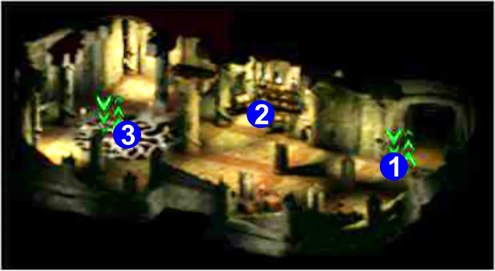 3. Засада. Поднимаясь по этой лестнице, вы попадете в засаду, устроенную скорпикотами, причем двое из них появятся у вас за спиной. Разделавшись с монстрами, на поляне к северу от лестницы вы найдете мертвого солдата культа, на теле которого обнаружите бальзам полного исцеления и эликсир лечения критических ран.