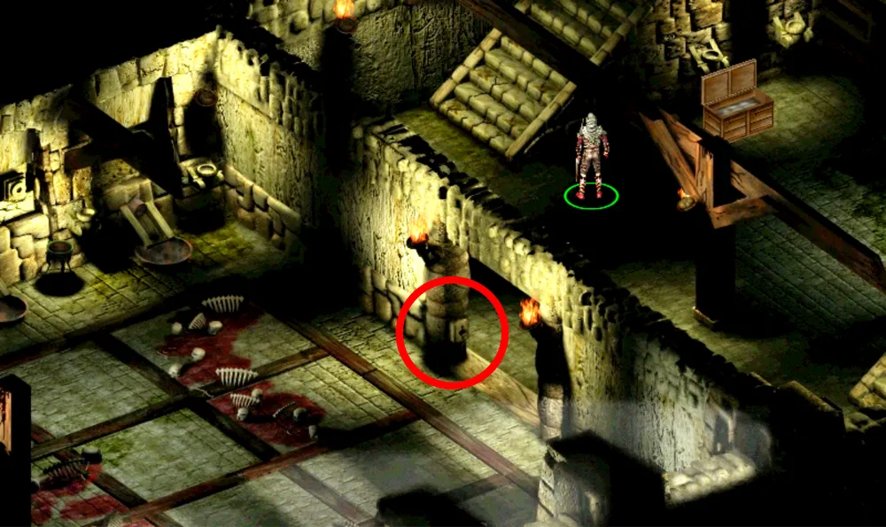 11. Дочерний источник. Его охраняют пять скорпикотов, которых проще истребить, если разместить свой отряд на лестнице. Помимо скорпикотов, вам необходимо уничтожить три кладки яиц скорпикотов, которые находятся вокруг источника. Когда вы приблизитесь к телу мертвой женщины, находящееся под лестницей, то увидите, что ее туника в месте, где на ней изображен символ серебряного пламени, изорвана и иссечена. Кто-то сделал это мертвое тело источником зла, которое питает дочерний источник.