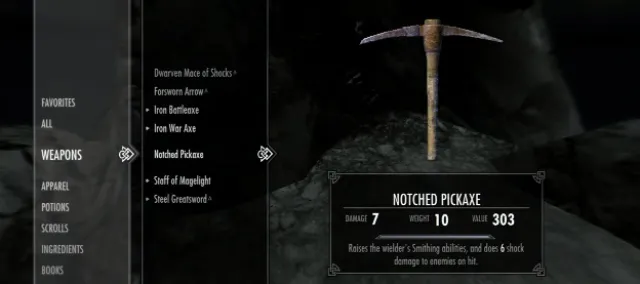 - В пещере «Холодный Берег» (Восточный Винтерхолд) вниз головой с потолка свисает скелет. Под скелетом – светящийся меч. Это ссылка на «Звездные войны. Эпизод V: Империя наносит ответный удар», когда Люк Скайуокер был пойман на Хоте и подвешен к потолку пещеры. Клинок же олицетворяет его световой меч.