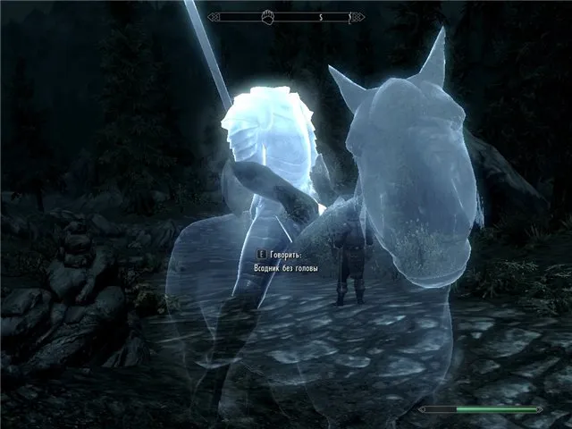 - Ночью игрок может встретить Всадника без головы. Он появляется как безголовый призрак на спектральной лошади, вооруженный секирой. Игрок не может с ним поговорить, но может пойти следом. Враждебные NPC и существа будут атаковать его, но он их игнорирует. Всадник доведет игрока до Привала Хамвира (Hamvir's Rest) и исчезнет. На кладбище вас ждут танцы со скелетами и сундук с сокровищами.