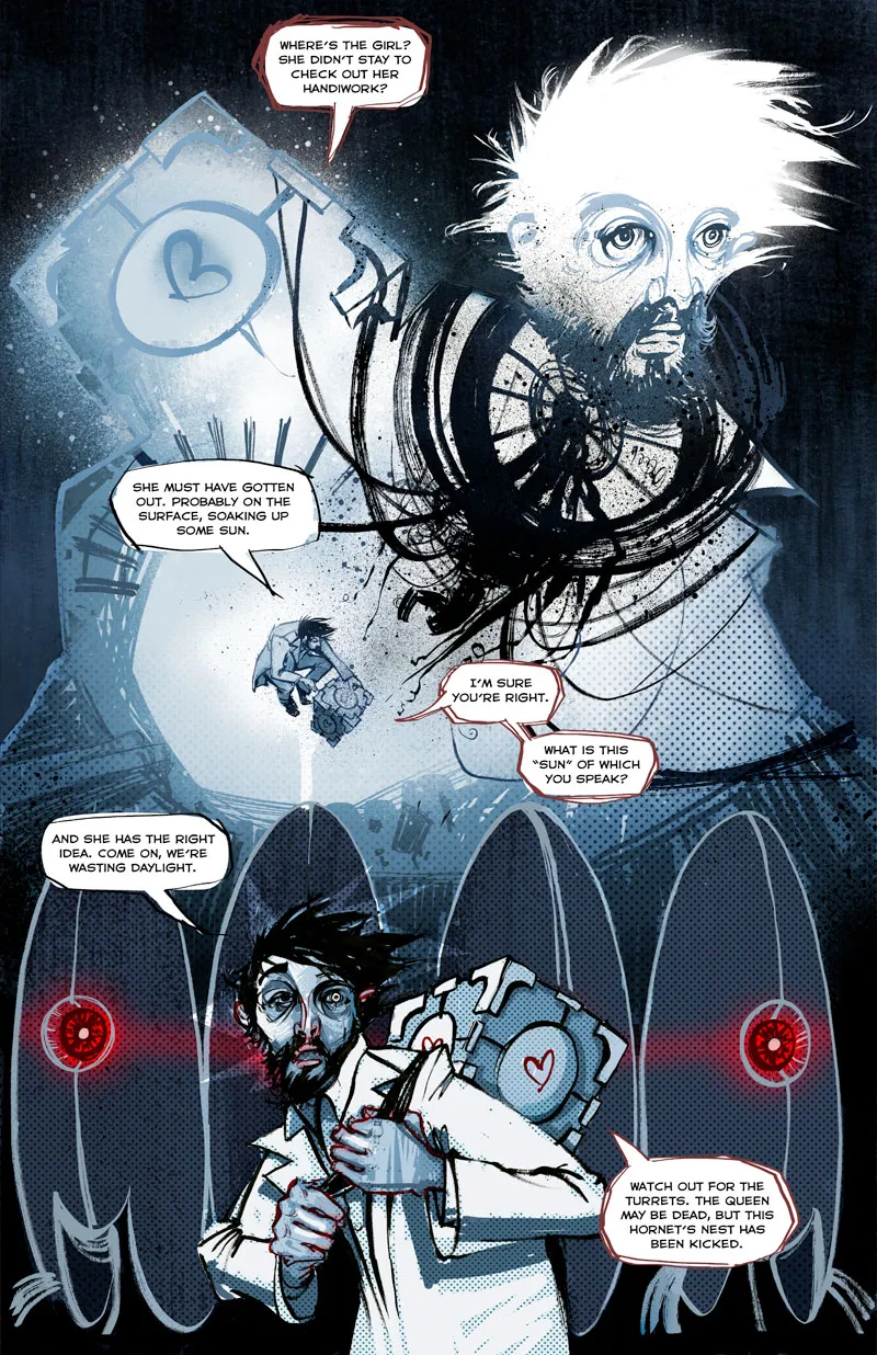 IGN наконец выпустили первый выпуск комикса, связывающего Portal и Portal 2. Центральным персонажем истории является Даг Раттмен, принимавший участие в разработке GLaDOS, а позднее скрывавшийся от неё в комплексе Aperture Science. Сама история первого выпуск повествует о событиях конца Portal. Второй выпуск выйдет на том же портале в понедельник.