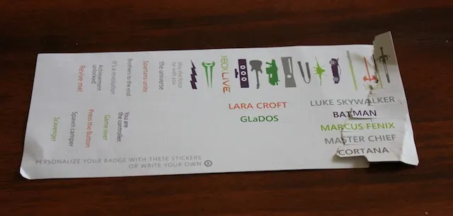 По данным сайта Arstechnica, журналисты получили от Microsoft специальные пропуски на выставку. В конверте лежал бейдж и наклейки, с помощью которых можно заполнить специальные пустые места на бейдже — статус, слоган, любимый герой и так далее. На наклейках находятся фразы, имена персонажей и изображения из нескольких крупных серий игр, таких как Star Wars, Halo, Tomb Rider, Gears of War и Portal.