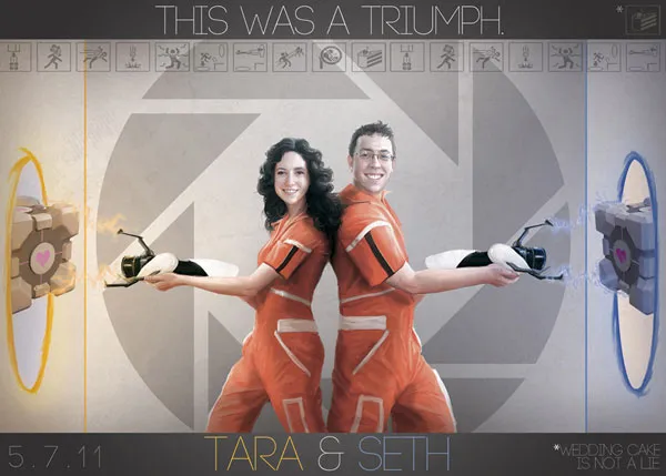 Тара и Сью именно такие фанаты. Как вы можете видеть по их праздничному постеру, в их планах пожениться 7 мая будущего года, сразу после выхода Portal 2 (официальный релиз 20 апреля).