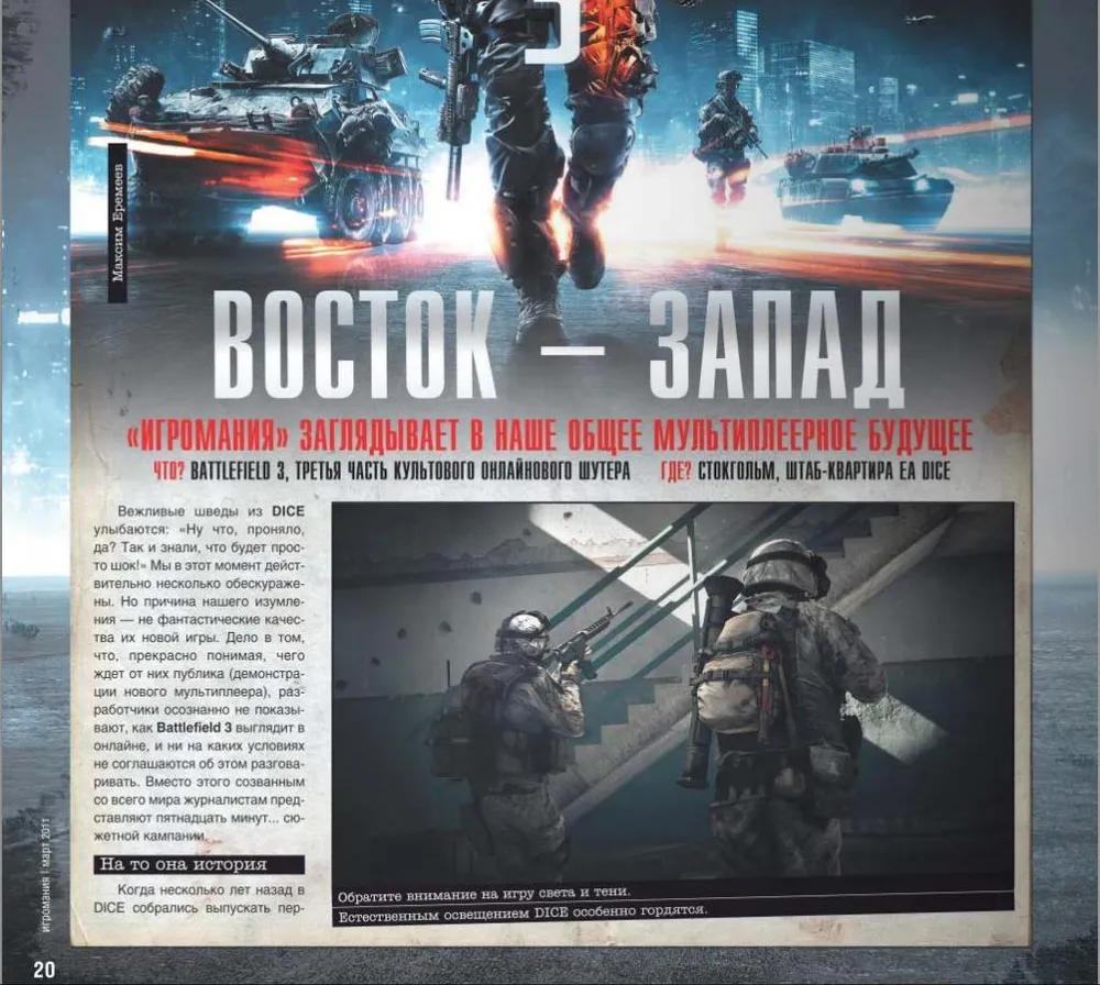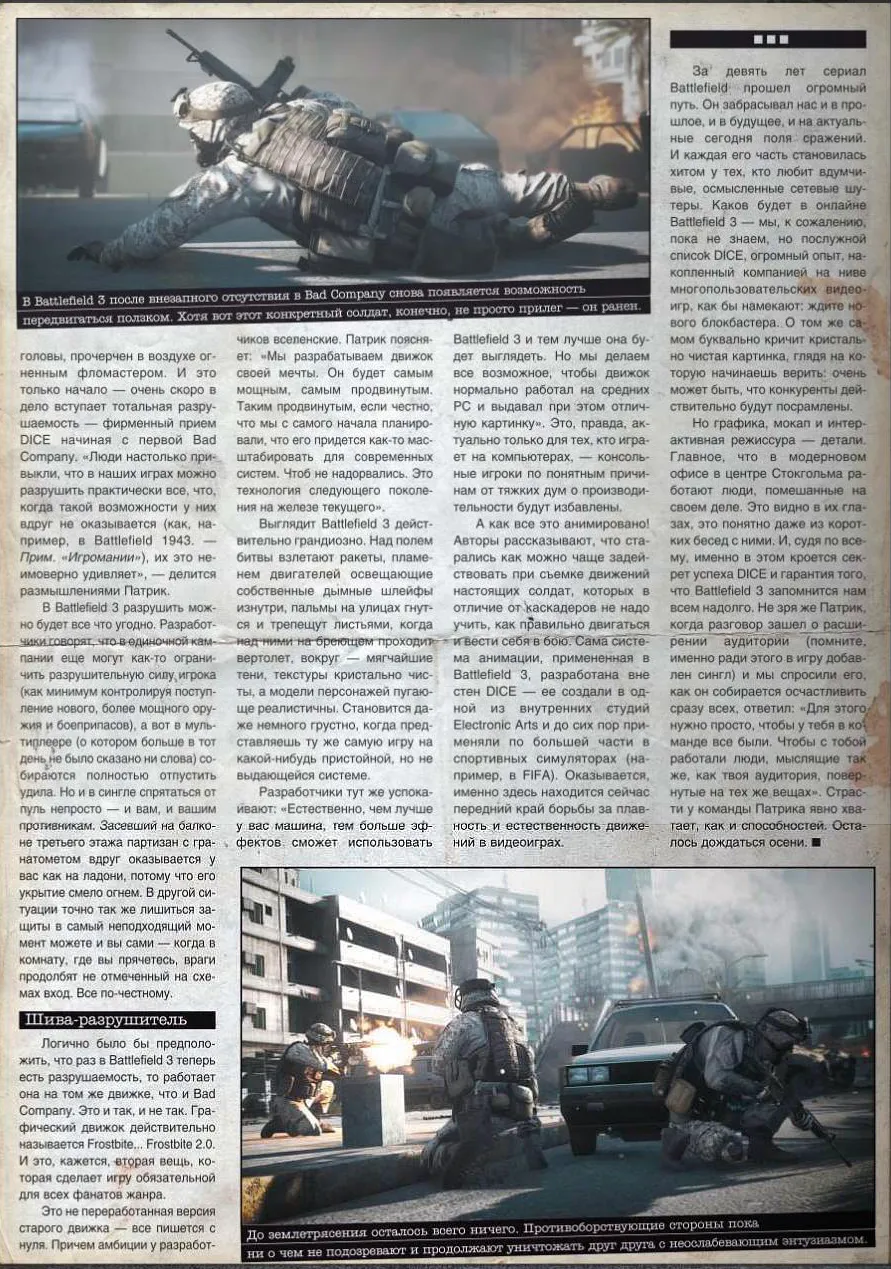 Статья о BF3 в журнале Игромания. Если следите за игрой, то в Игромании ничего нового не увидите, если нет, можно почитать, обрисовать общую картину.
