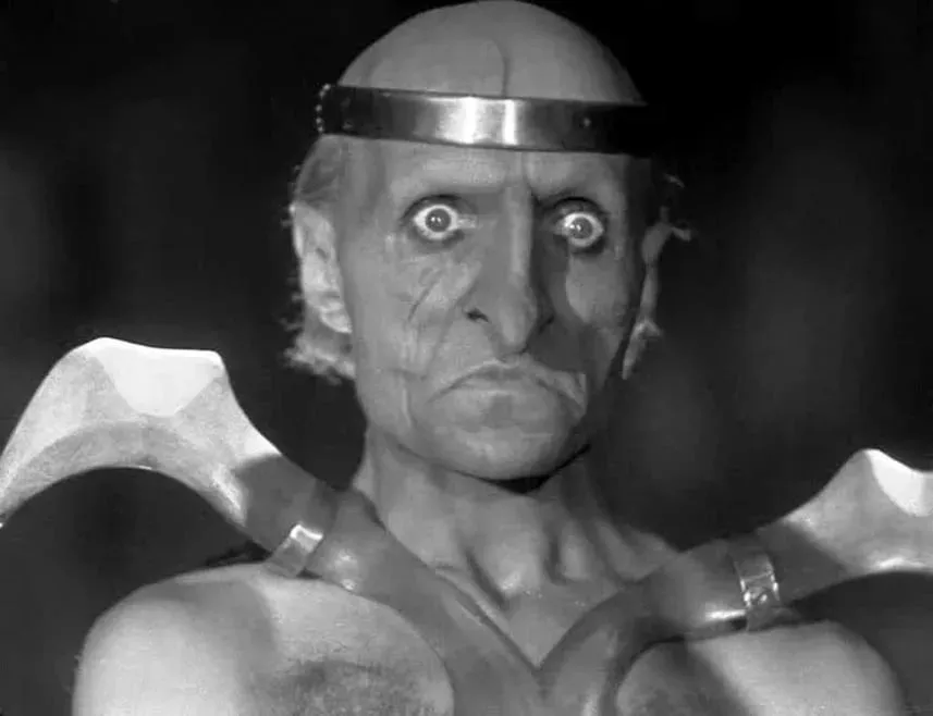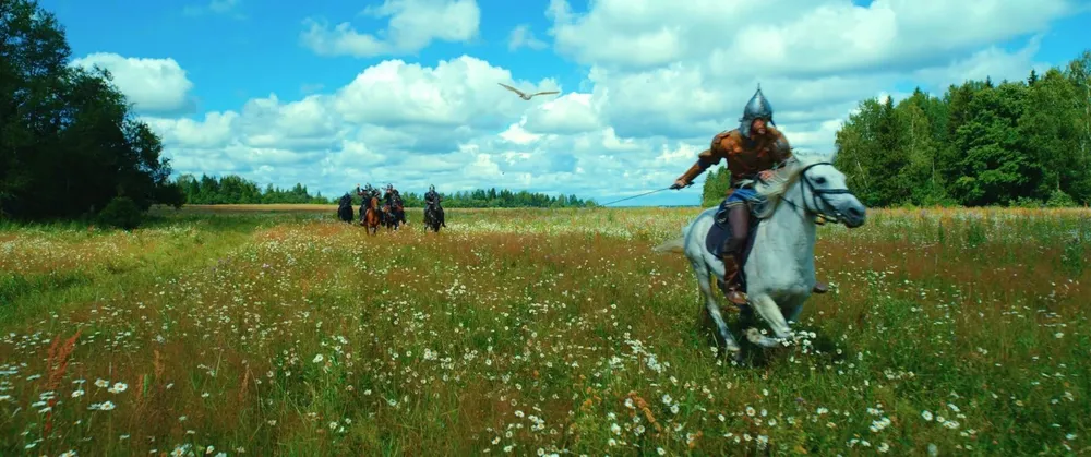 Не придурковатый микроцефал в шлеме-напёрстке верхом на осле и с дубиной в руках, а настоящий богатырь, верхом на коне, с мечом; многочисленные дружинники ничего не могут с ним поделать. Ему бы ещё защиту от магии…